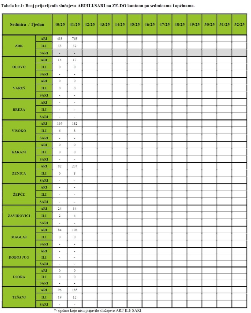 Od 40. sedmice 2025 godine, započeo je epidemioški nadzor nad kretanjem gripe u Zeničko-dobojskom kantonu za sezonu 2025/2026.